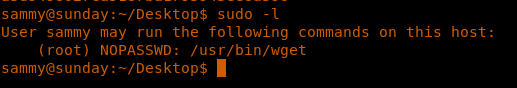 26. It looks like Sammy can run the wget utility as root.