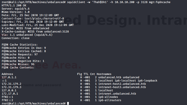 - Since we have discovered the password as well, we can get more details with squidclient. Running squidclient, we can see some new IP addresses/DNS.