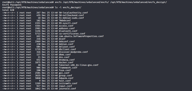 - Now, using the encfs utility to recover all the files using the password discovered above, we get the below files.