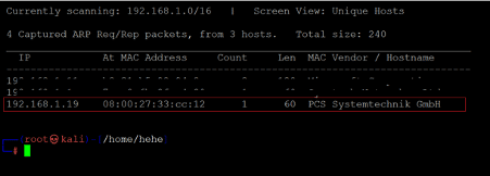 Command used: << netdiscover >>