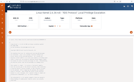 In the above screenshot, we can see that we used the 'uname –a' command to identify the operating system and kernel. After getting the version information, we researched Google for an available exploit to access the target machine. We found that the Linux kernel is vulnerable to a local privilege escalation vulnerability. There is an exploit available for the same on the exploit-DB website. The Google results can be seen below.