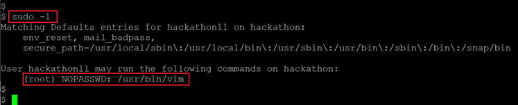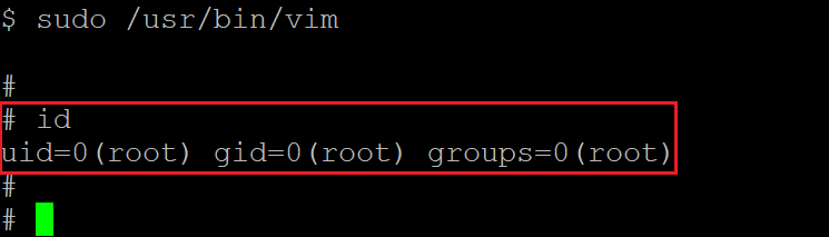 In the above screenshot, we can see that we have run the ‘vim’ utility using sudo to initiate privilege escalation.