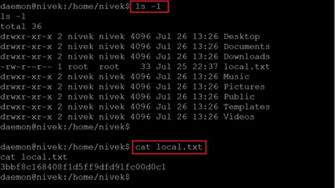 Command used: << cat local.txt >>