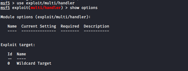 Terminal: use exploit/multi/handler