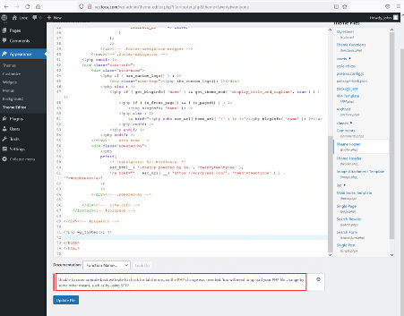 As this is an admin account, we have permission to edit the code in the target application. We can add a php shell by editing files in the target application. But when we tried editing the code, it showed an error message that the changes were reverted. The error can be seen below.