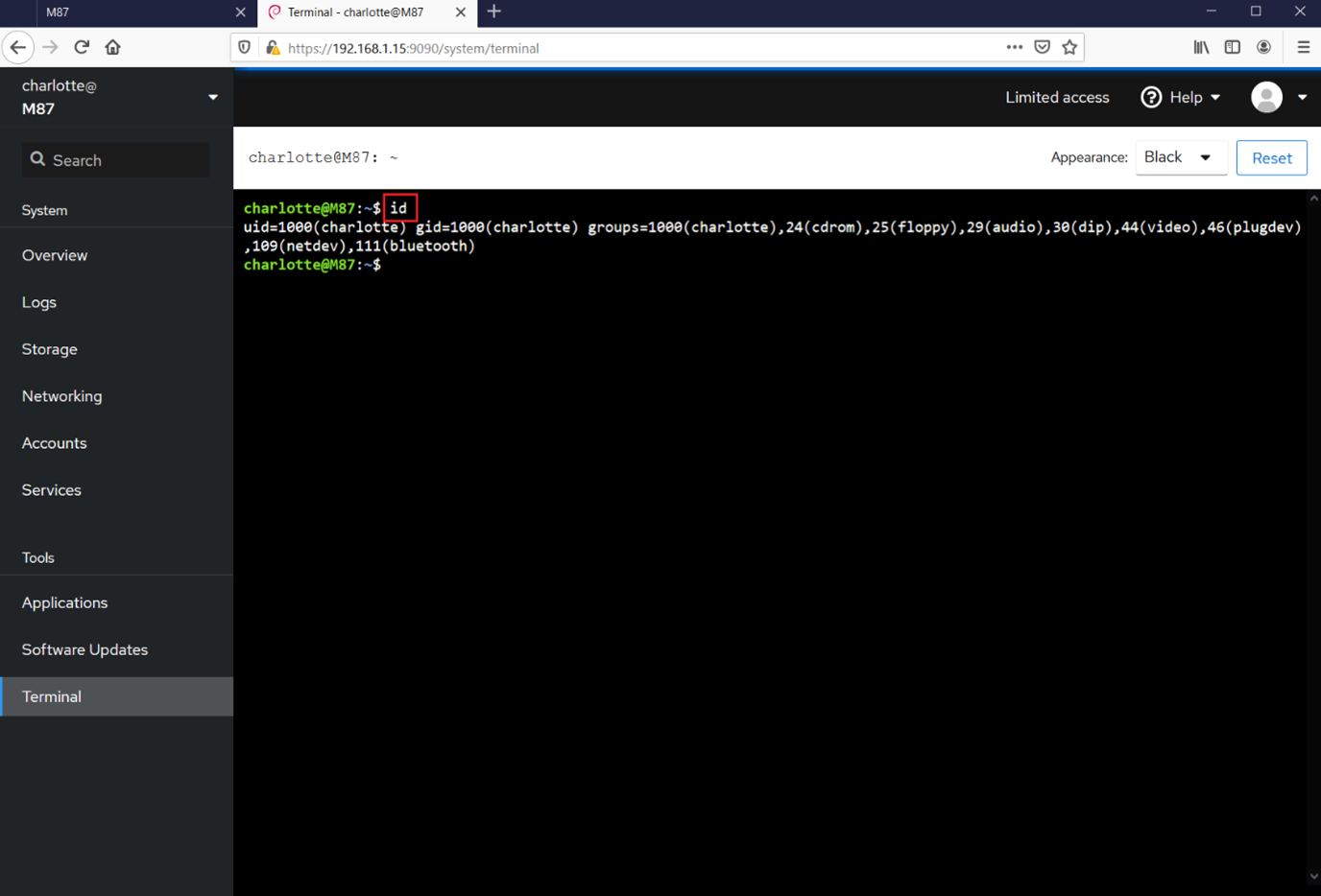 This login page is used to log in to the target machine server. We found a terminal functionality that could be run through the browser.