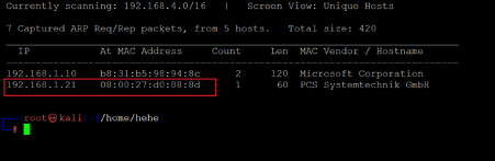 Command used: << netdiscover >>