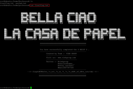 This marks the completion of this CTF as we have gained access to the root user and read both the flags. I hope you enjoyed this money heist-themed CTF. Stay tuned for many more challenges and solutions.