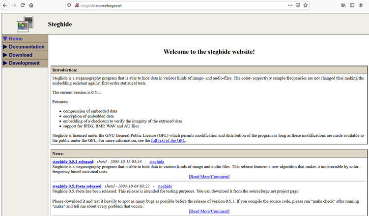 The official website of the Steghide tool can be seen below.