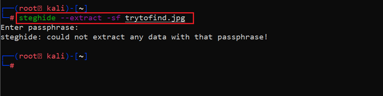 Command used: << steghide --extract -sf trytofind.jpg >>