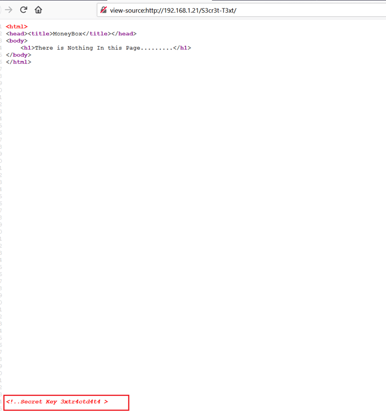 In the comments, we found a secret key, but we do not have anywhere to use it as of now so we took note of this information for later use. We tried a Dirb scan on the secret directory to find any other clues. The result can be seen in the following screenshot.
