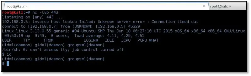 As can be seen in the backdoor code we used our own local system IP and port on which netcat will listen.