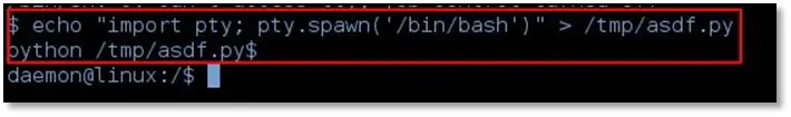 Now for running su command, we need the proper terminal access right now we were not able to run the su command from bash environment. So by using the following command we had full terminal access: echo "import pty; pty.spawn('/bin/bash')" > /tmp/asdf.py