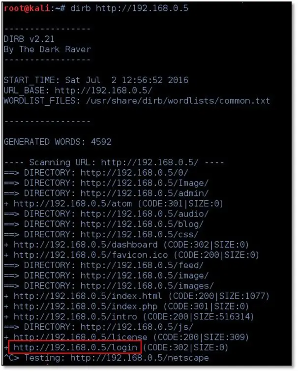 After that, we ran dirb tool for directory enumeration by using the following command dirb http://192.168.0.5
