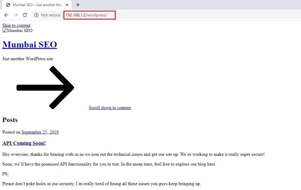 As we have already identified that port 80 and port 8000 are available on the target machine and both are being used for running the HTTP service, let’s open the target machine IP address on the browser. It can be seen in the following screenshot: