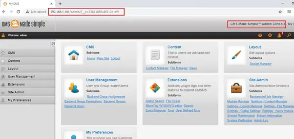 Let’s log into the admin module with the changed username and password. The result can be seen in the following screenshot.