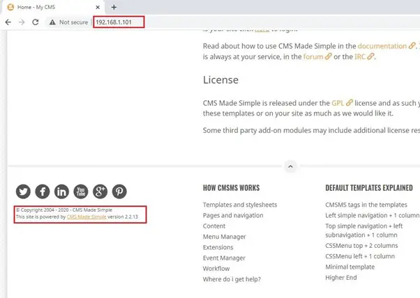 As can be seen in highlighted area of the above screenshot, our target machine is running a CMS-based website. The name of the CMS is “CMS Made Simple” and the running version is 2.2.13.
