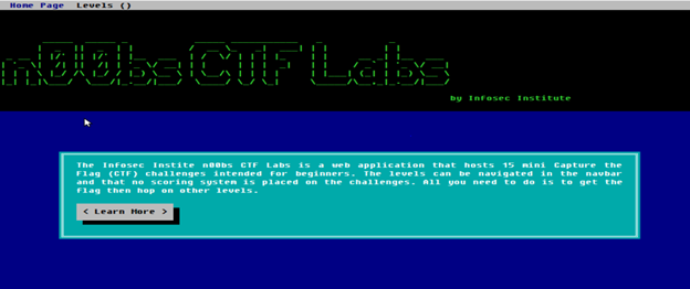 n00bs CTF (Capture the Flag) Labs is a web application presented by Infosec Institute. It has 15 mini Capture the Flag challenges intended for beginners and newbies in the information security field or for any average infosec enthusiasts who haven't attended hacker conventions yet.