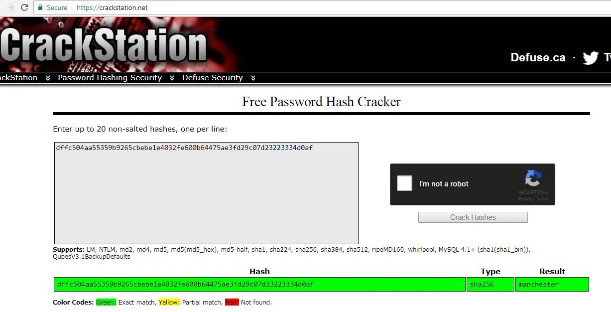 Now let’s try to crack these password hashes. For that, I used the online password cracker website Crack Station. It was quite easy to use: We just need to enter all the hashes on the website and click on the Crack button. If there is a weak password used by the user, it will be cracked by the website.