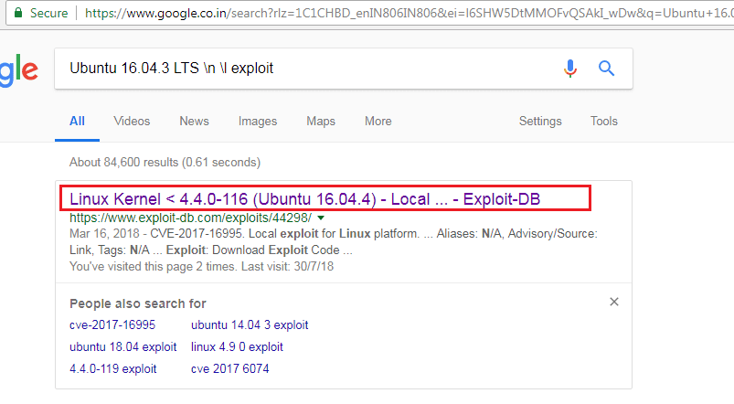 Now we have the information of the running operating system and the kernel version, so let’s search for an exploit on Google.