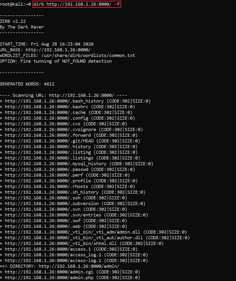The Dirbuster scan took some time to complete and generated a large amount of output. We started analyzing all the files one by one and found that there is an admin folder in the application: