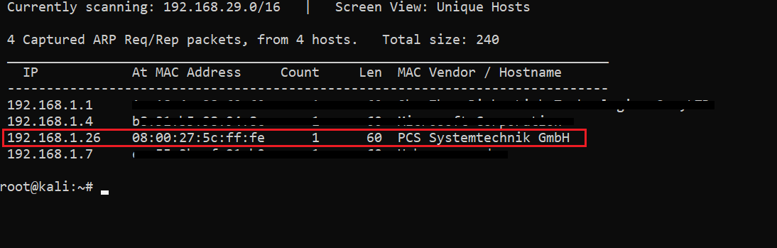 In the highlighted area of the above screenshot, we can see the target machine IP address. The target machine IP address is 192.168.1.26 and I will be using 192.168.1.27 as the attacker IP address.