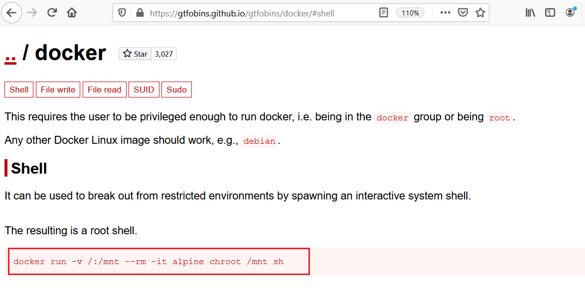We researched various methods on how we can utilize Docker to get the root access of the target machine. I found an article with some useful commands, which can be seen in the following screenshot.