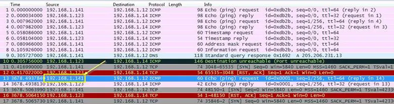 Analysis - We will open the trace file and see what's going on. As can be seen below, the ICMP echo request is coming through 192.168.1.141.