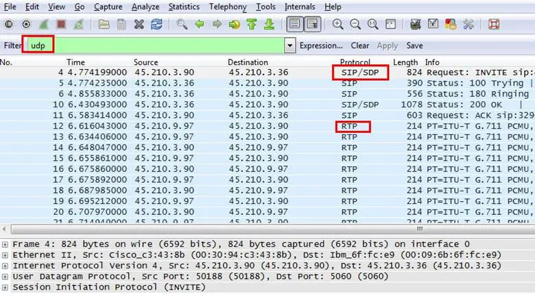 Analysis - Okay... the question is based on UDP protocols, so we applied a filter for UDP, and as can be seen below, now we can see only three types of protocols in use: SIP, SDP and RTP.