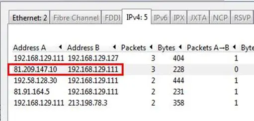 Analysis - Go to Statistics and select Conversations, and as can be seen below, there are 6 connections that have been initiated, and the second connection is between 81.209.147.10 and 192.168.129.111.