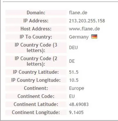 Analysis - As we know, the host is trying to resolve flane.de, so here we used a domain look up service for flane.de and we got the all details.