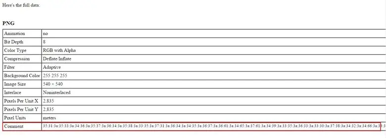 We found all Meta data from the image and we found in comment section there was hex code.