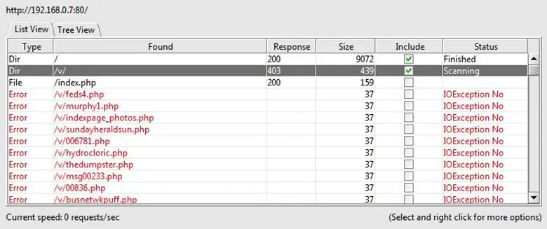 We ran DirBuster on the target but didn't found anything interesting. There was only one "V" directory, which was forbidden for access.