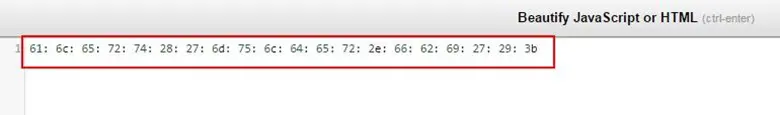 We put this JavaScript in JS beautifier for de-obfuscating the script and we found hex code.
