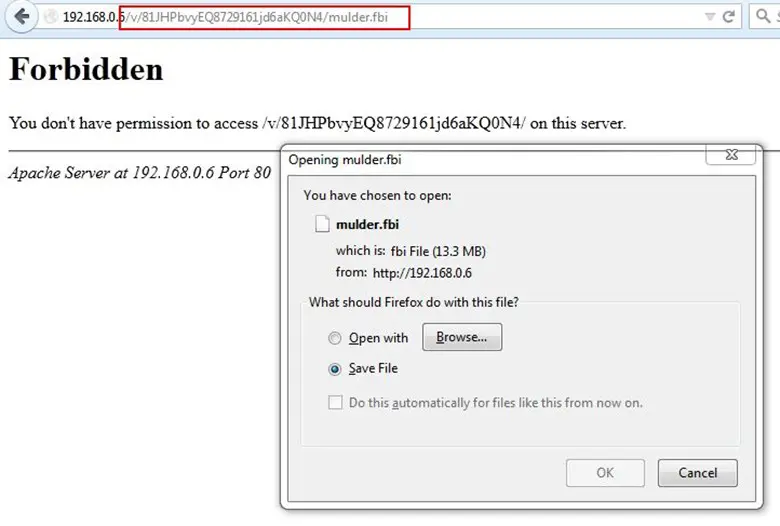 We opened the directory and it showed access forbidden, again we added that file name, which we found from JavaScript mulder.fbi, and the file was there.