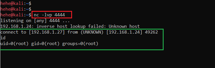 As per the given information on the ExploitDB website, it should automatically run as a root user and give us the shell. We opened another window on our attacker machine and configured the NetCut listener on port 444. After executing the update file on the target machine, we got the root shell within a few seconds! Take a look below.