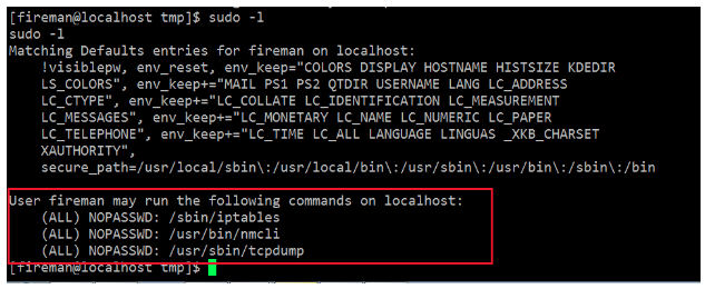 After that, we had to run the Python command again to take the stable shell on the target machine. We again run the sudo –l command to see whether it would work as the fireman user, but it gave an error.