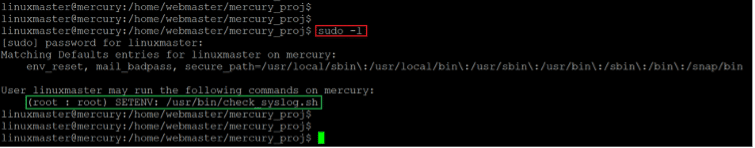 Command used: << sudo -l >>