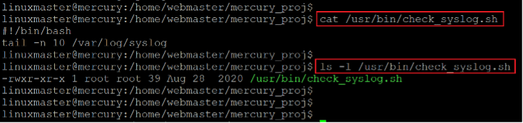 We checked the current user privilege by running the "sudo –l" command. This time, the system allowed it. We found that the current user owns sudo rights for "check_syslog.sh" bash script. Let's use this file to escalate current user privilege to root.