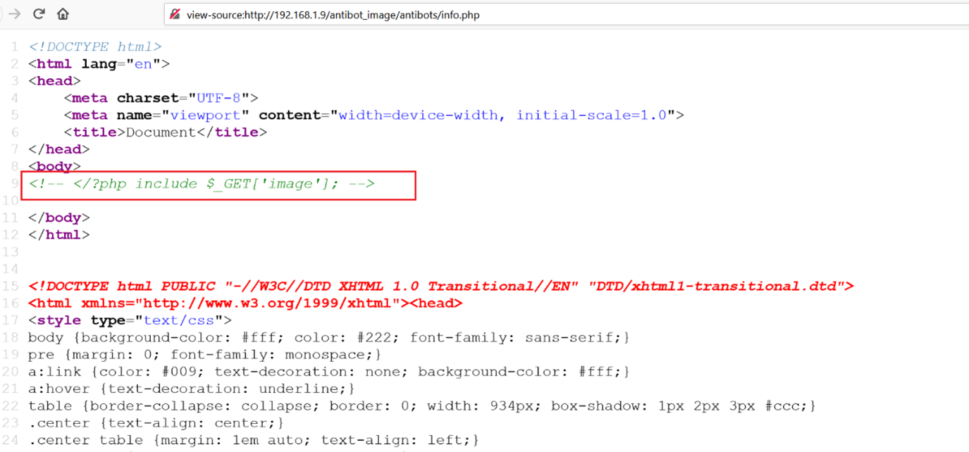In the above screenshot, we can see the phpinfo file is available, which contains useful information about the system. During the analysis, we found some php code in the comments section of the source.