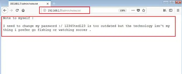A note is written which says the current password is "12345ted123," which needs to be changed. So at this time I thought there might be a login page in this application where we can log in with this password. I explored other directories to find the login page but didn't find anything.