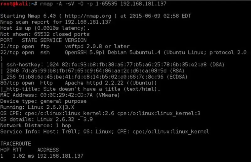 #nmap –A –sV –O –p 1-65535 192.168.181.137