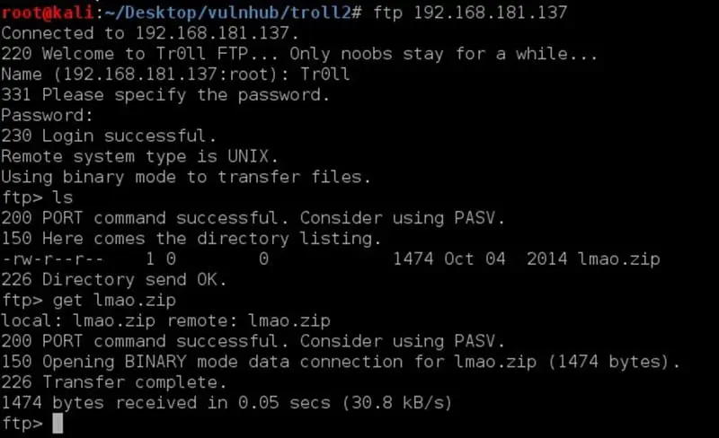 After bruteforce, I got one valid credential for ftp that was Tr0ll: Tr0ll
