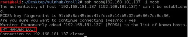 Troll2 is not that easy. It gave a message TRY HARDER LOL! Moreover, closed the session.