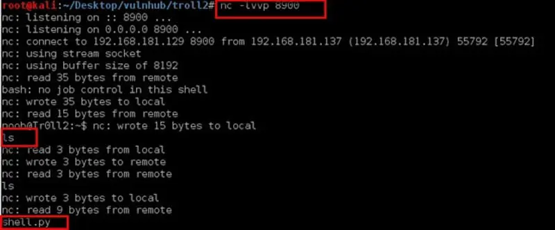 Set up a listener by #nc –lvvp 8900 and got the session.