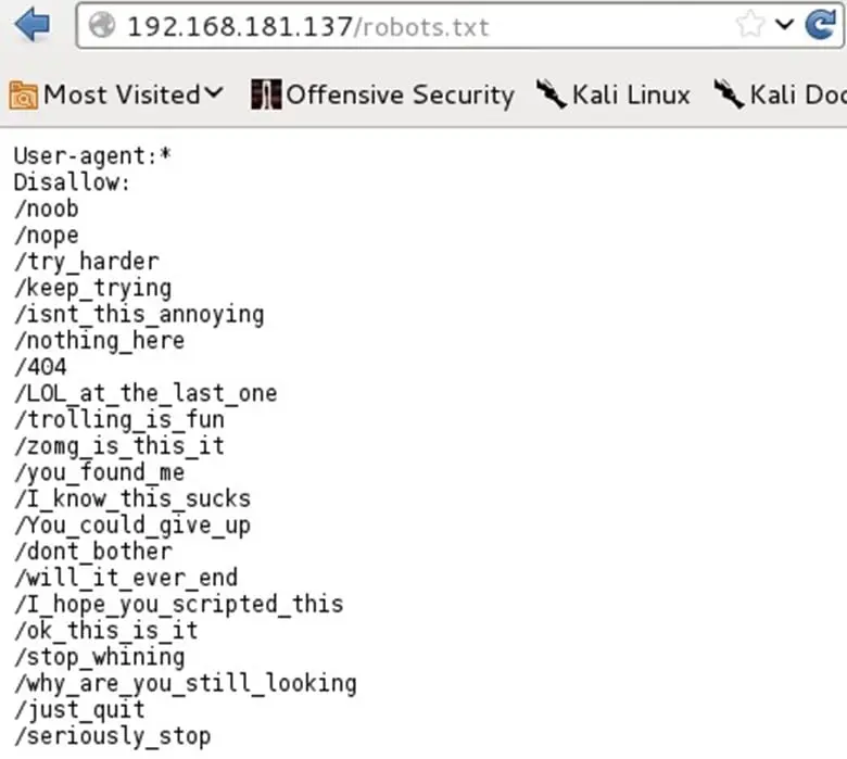 #dirb http://192.168.181.137 "path to the robots_entry file."